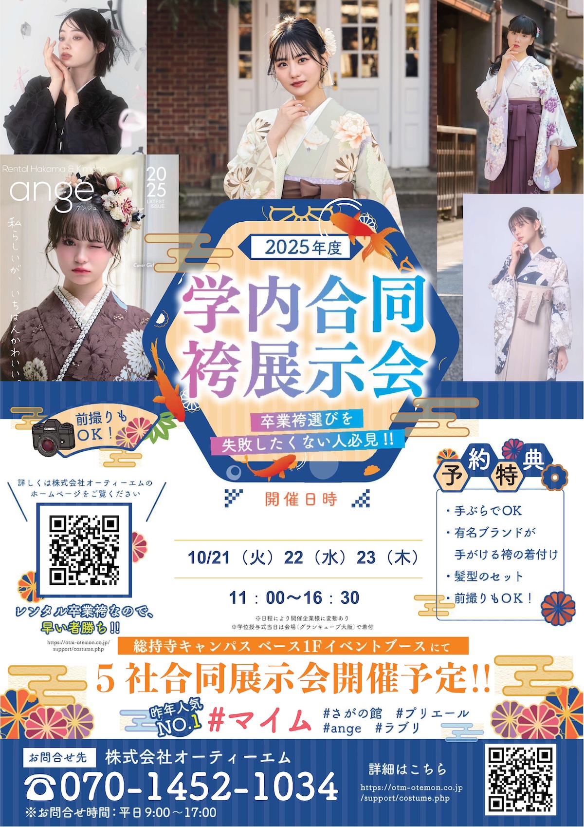 株式会社オーティーエムでは、きものレンタル会社と提携し、学内での展示・予約会を開催しております。