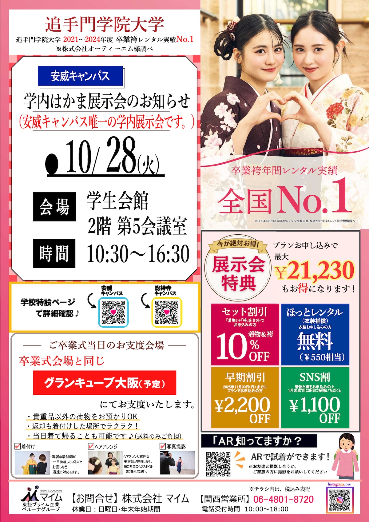 株式会社オーティーエムでは、きものレンタル会社と提携し、学内での展示・予約会を開催しております。